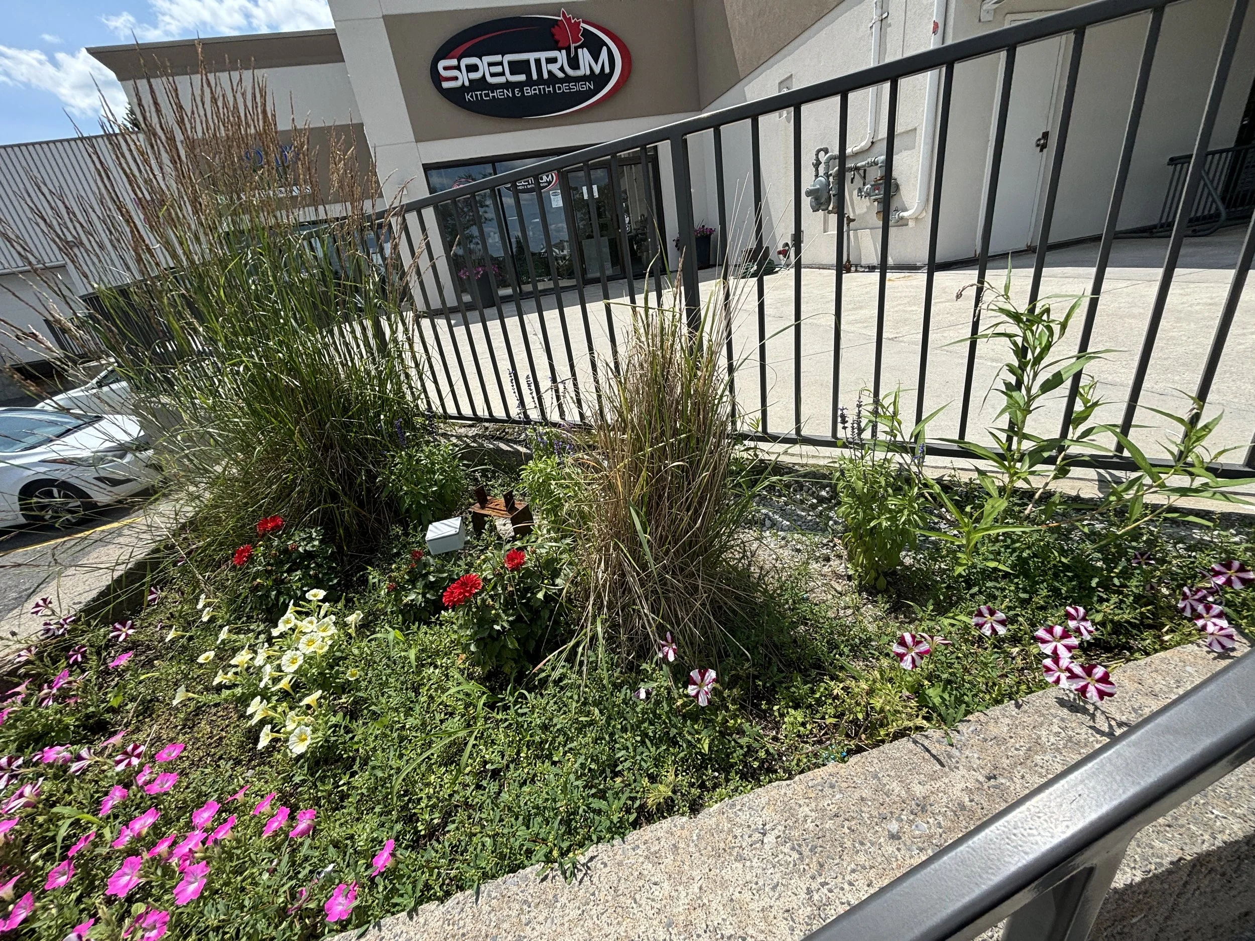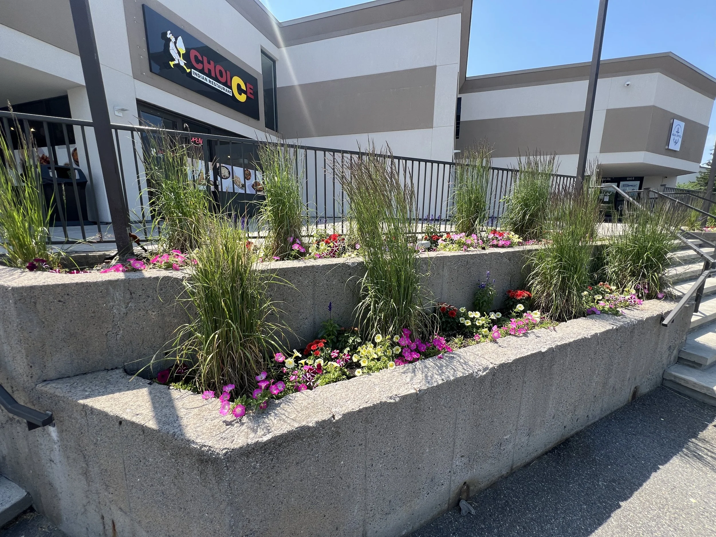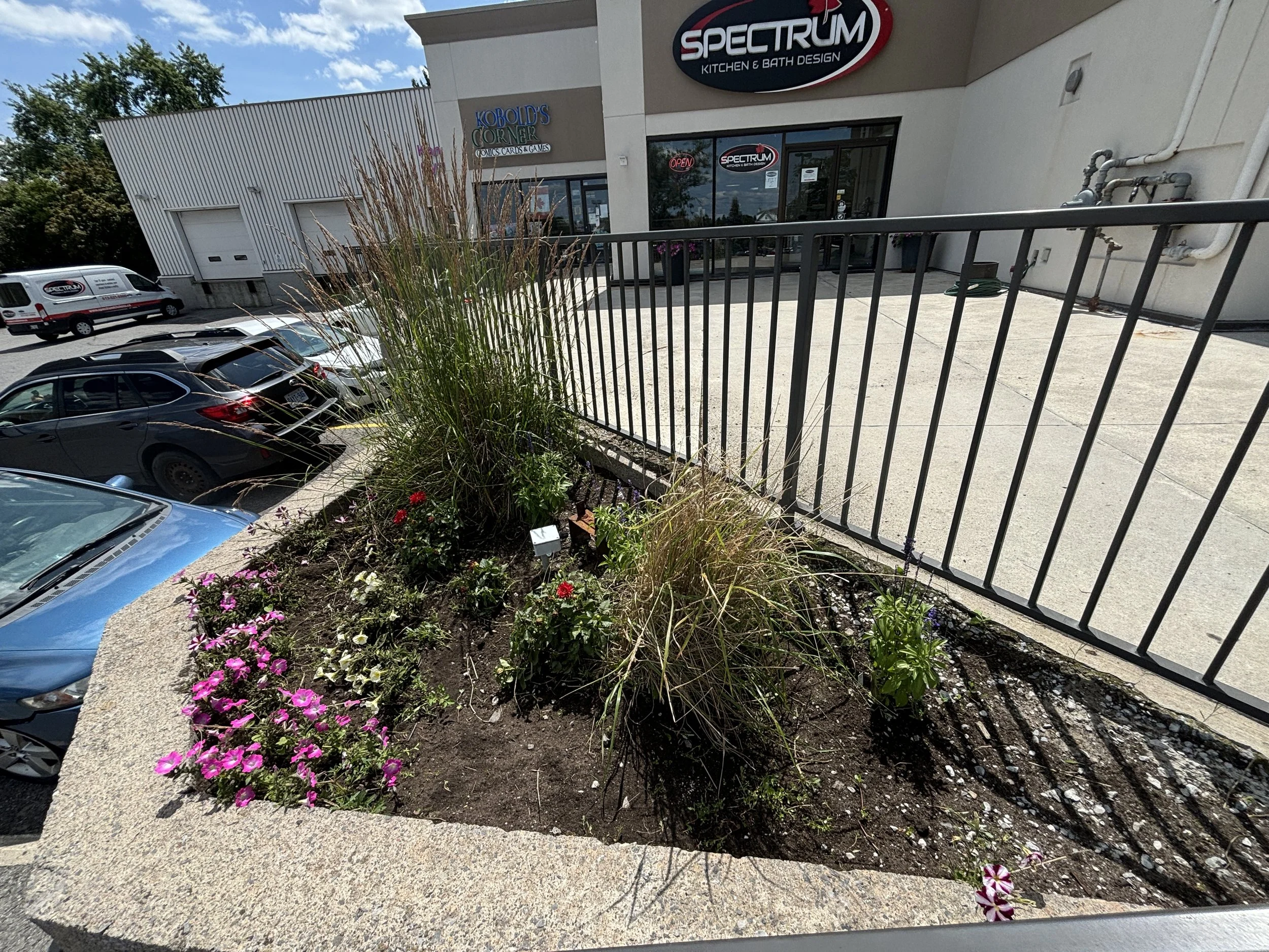 At this high-traffic commercial site, our task was to rejuvenate tired foundation beds with a fresh, cohesive layout that enhances curb appeal and seasonal interest. We replaced declining plant material with hardier, drought-tolerant selections to reduce inputs and improve visual rhythm—while preserving the integrity of the building’s architecture.